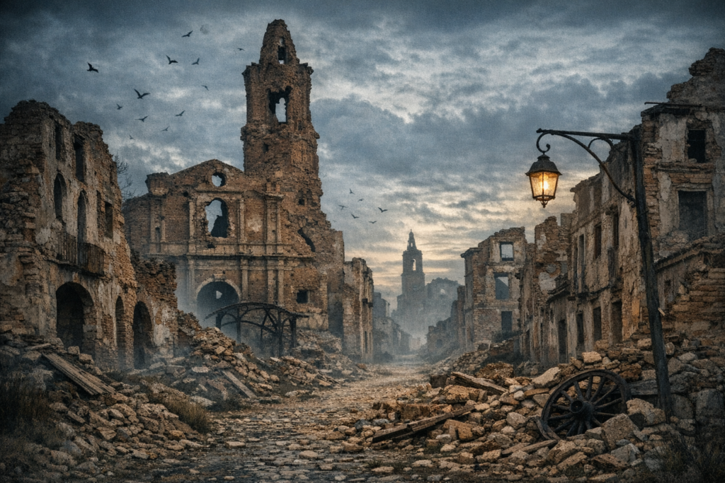 Belchite no es solo un lugar paranormal: es un recordatorio. Un pueblo que quedó congelado en el instante de su destrucción. Un escenario donde la historia sigue viva… y donde, según muchos, los que murieron allí tampoco se han ido del todo.