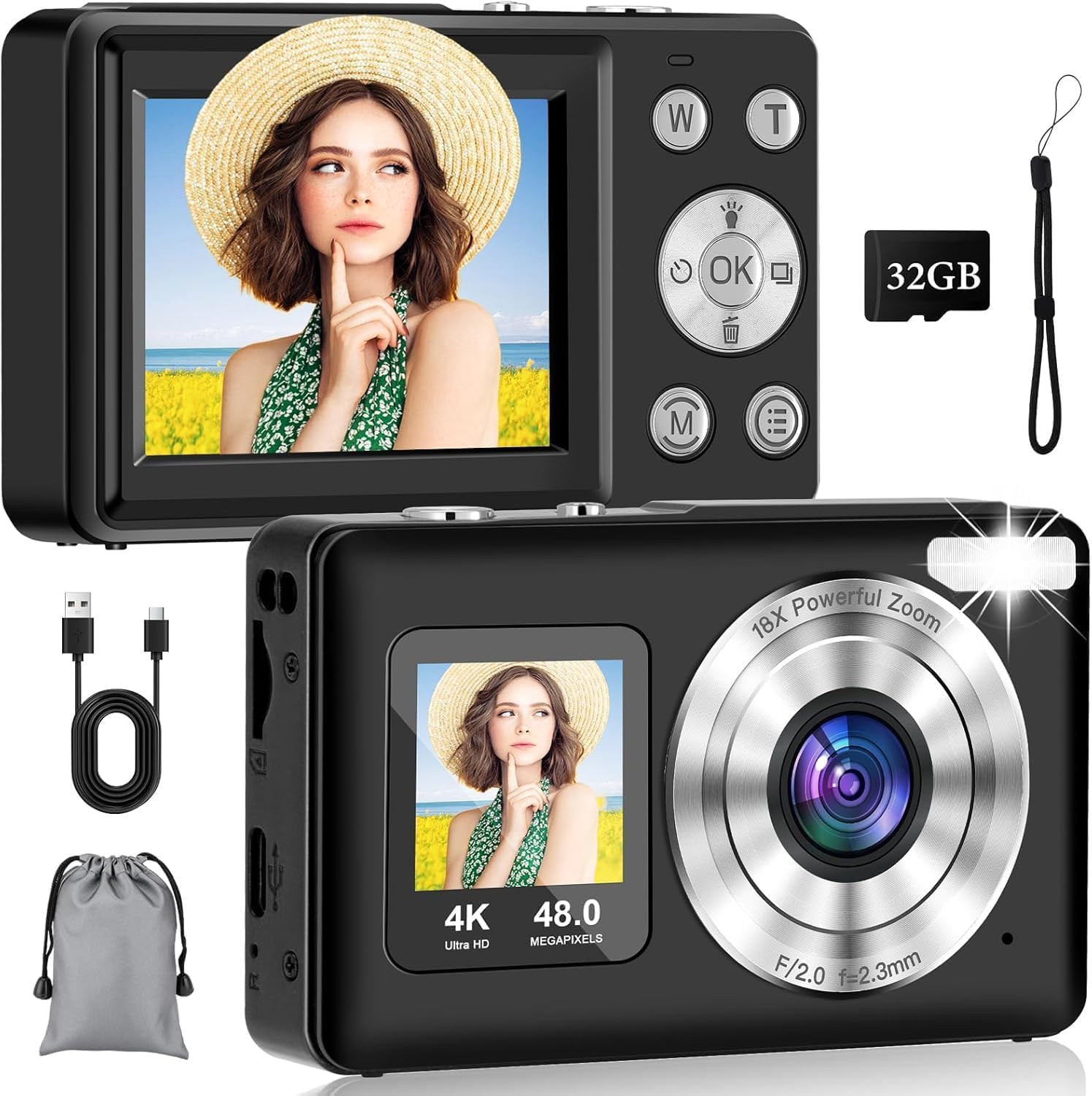 | Cámara Digital 4K【2 Pantalla】 – 32 GB, 48 MP | Cámara de Fotos 1080P 30MP | WOLFANG Cámara digital,de 50 MP | TAGALOA® Camara Digital De Doble Pantalla con 48 MP + Tarjeta SD 64GB + Bolsa De Transporte |